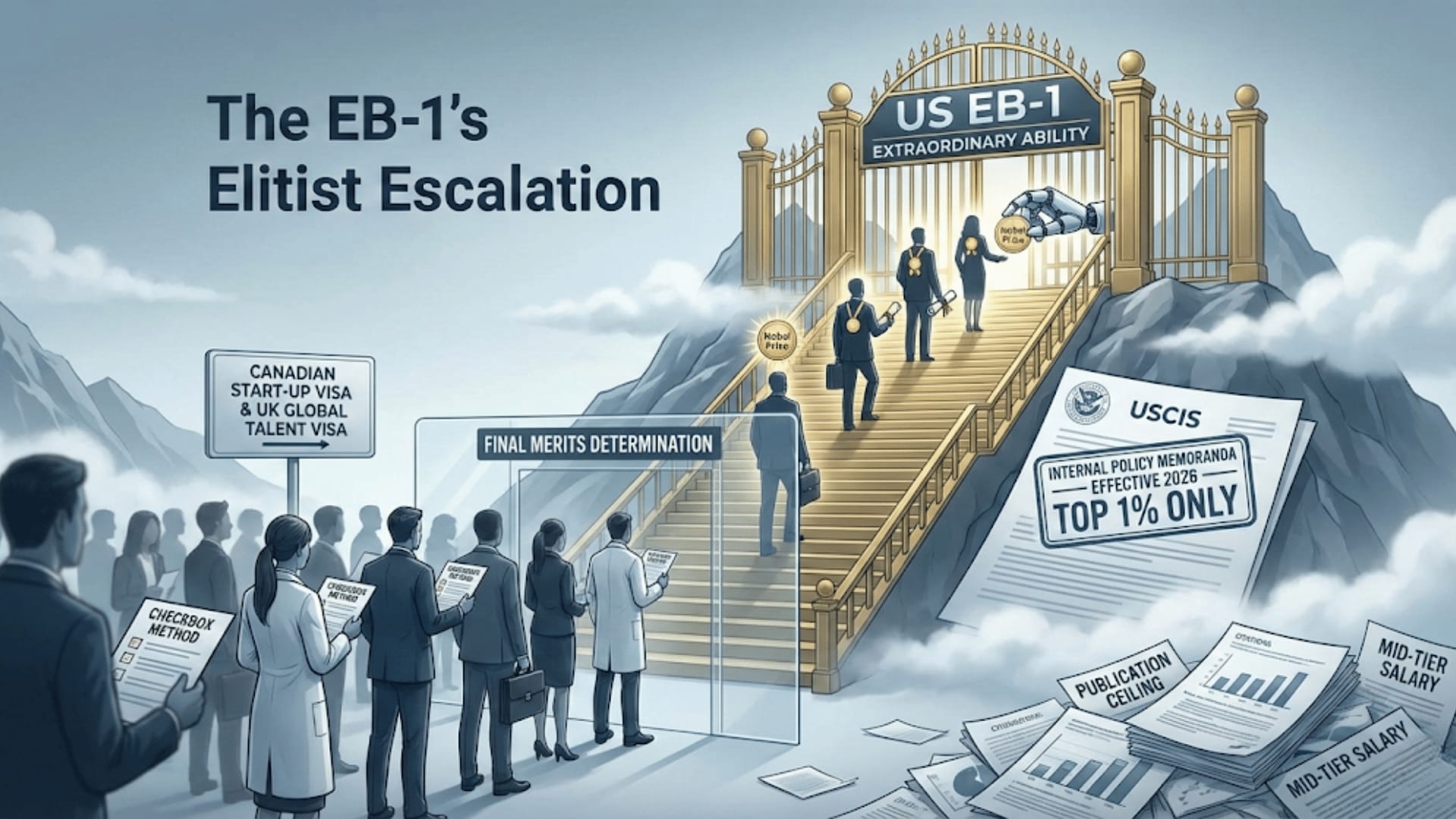 The US EB-1 Extraordinary Ability category has changed a lot in a quiet way since 2026, thanks to USCIS internal policy memoranda.The US EB-1 Extraordinary Ability category has changed a lot in a quiet way since 2026, thanks to USCIS internal policy memoranda.The US EB-1 Extraordinary Ability category has changed a lot in a quiet way since 2026, thanks to USCIS internal policy memoranda. The ten legal requirements are still the same, but the "Final Merits Determination" has become almost impossible for all but the top 1% of global talent to get through.The ten legal requirements are still the same, but the "Final Merits Determination" has become almost impossible for all but the top 1% of global talent to get through.The ten legal requirements are still the same, but the "Final Merits Determination" has become almost impossible for all but the top 1% of global talent to get through. The 2026 standard for "sustained national or international acclaim" has been changed to require not only proof of success, but also proof of a lasting effect on the industry.The 2026 standard for "sustained national or international acclaim" has been changed to require not only proof of success, but also proof of a lasting effect on the industry.The 2026 standard for "sustained national or international acclaim" has been changed to require not only proof of success, but also proof of a lasting effect on the industry. This has made the EB-1 a "genius visa" in the truest sense, making it less of a good option for senior business executives or successful researchers.This has made the EB-1 a "genius visa" in the truest sense, making it less of a good option for senior business executives or successful researchers.This has made the EB-1 a "genius visa" in the truest sense, making it less of a good option for senior business executives or successful researchers.